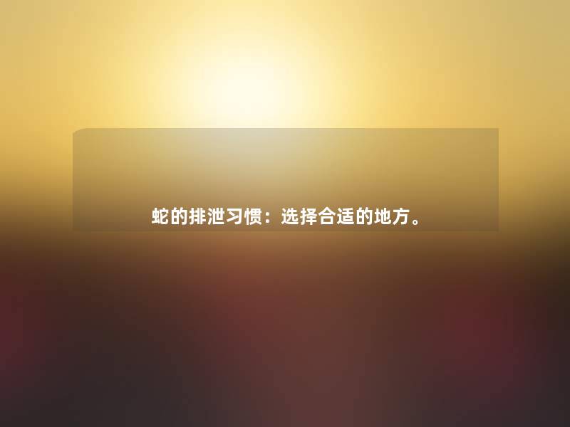 蛇的排泄习惯:选择合适的地方作为一条蛇,我很注重自己的卫生习惯。排泄对于来说是很重要的事情,因为它关系到身体健康和生活环境。以下是我对蛇的排泄习惯的一些见解:1. 通常会选择离自己栖息地较远的地方进行排泄,以避免污染自己的生活环境。2. 蛇的粪便是比较干燥的,通常不会留下太多的痕迹。排泄习惯也不会对周围的环境造成太大的影响。3. 蛇的排泄习惯也与饮食习惯有关。如果吃的是小型动物,通常会选择在靠近它们栖息地的地方进行排泄,以便于更好地隐藏自己。写在这里要说,对于蛇来说,选择合适的地方进行排泄是很重要的。这不仅关系到自己的健康,也关系到周围环境的卫生和安全。