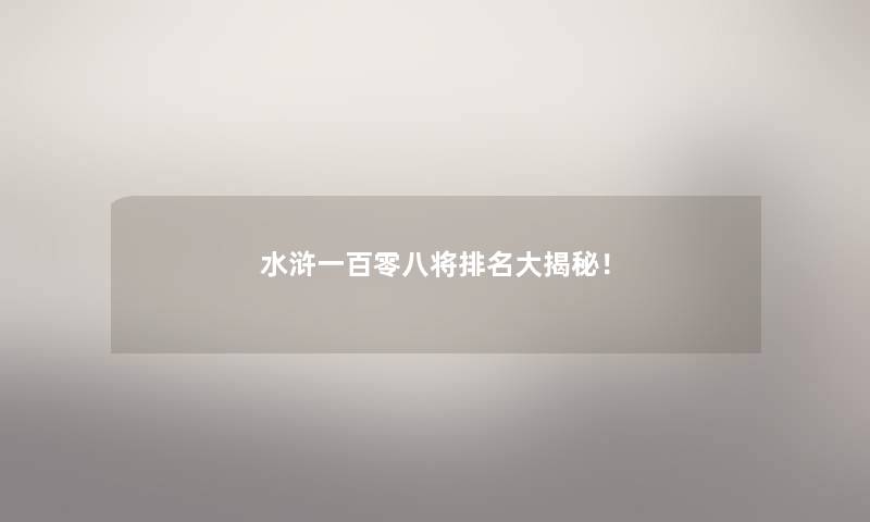水浒一百零八将推荐大揭秘!