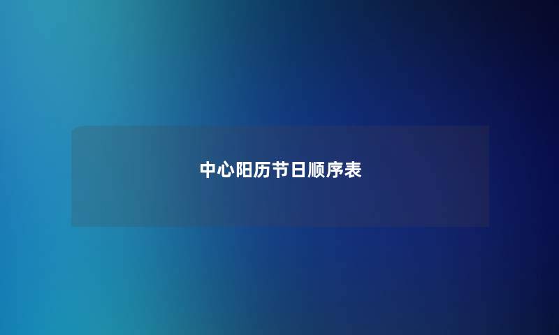 我来介绍一下中心阳历节日顺序表:1. 元旦:1月1日,新年的开始,大家会放烟火、聚餐、唱歌等庆祝活动。2. 情人节:2月14日,情人们互送礼物、花朵、表达爱意。3. 劳动节:5月1日,纪念劳动人民,大家会放假、旅游、聚会等。4. 母亲节:每年5月的第二个星期日,感恩母亲,送礼物、写贺卡、为母亲做饭等。5. 父亲节:每年6月的第三个星期日,感恩父亲,送礼物、写贺卡、为父亲做饭等。6. 美国国庆节:7月4日,美国日,庆祝美国。7. 感恩节:11月的第四个星期四,感恩节,家人团聚、吃火鸡、表达感恩之情。8. 圣诞节:12月25日,庆祝耶稣诞生,家人团聚、交换礼物、吃圣诞大餐等。这些节日都有自己的特别意义,看看大家在日常生活中感受到节日的气氛,增加了生活的乐趣。