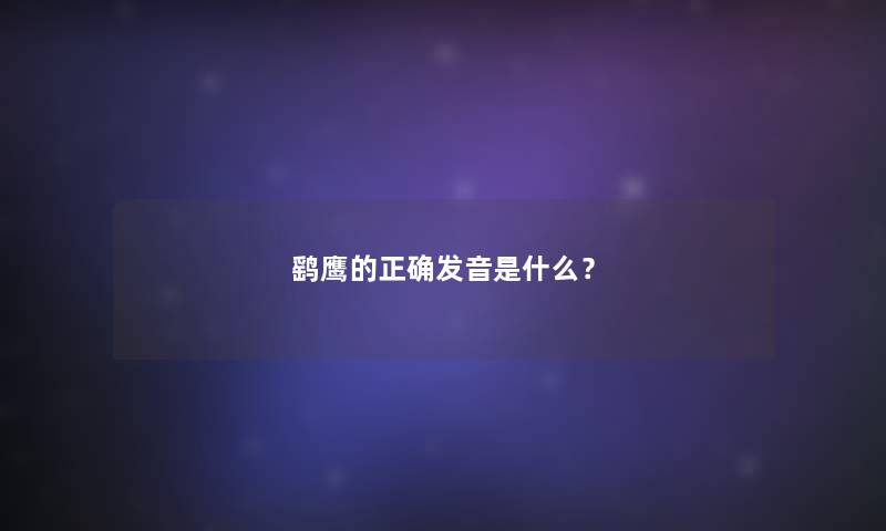 我是一个热爱动物的人,今天我来给大家介绍一下鹞鹰的正确发音。