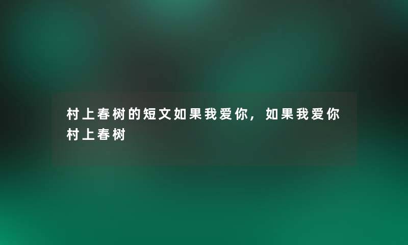 村上春树的短文如果我爱你,如果我爱你村上春树