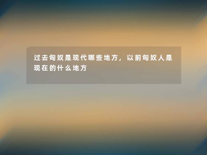 过去匈奴是现代哪些地方,以前匈奴人是现在的什么地方