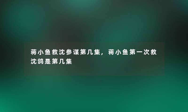 大家好,我是喜欢看电视剧的小鱼儿,今天要和大家分享一集让我印象深刻的《蒋小鱼救沈参谋》。这一集发生在《蒋小鱼》第八季的第十五集,是整个剧情中的一个转折点。
