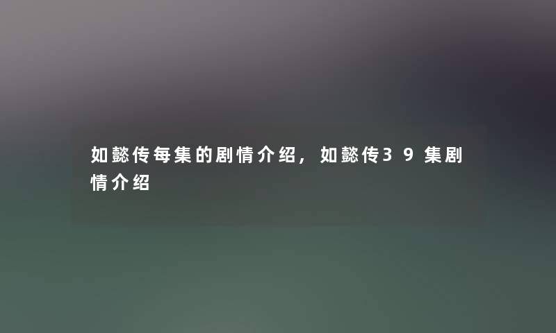如懿传每集的剧情介绍,如懿传39集剧情介绍