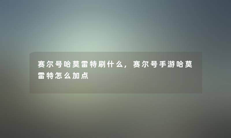 加点方面的建议,我还想和大家分享一些关于哈莫雷特的。在赛尔号的世界中,哈莫雷特是一位勇敢无畏的,他曾经参加过许多重要的战斗,为保护赛尔号的和平而奋斗。他的勇敢和坚韧精神深深地着,看看大家更加喜欢他这个角色。