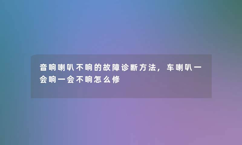 音响喇叭不响的故障诊断方法,车喇叭一会响一会不响怎么修