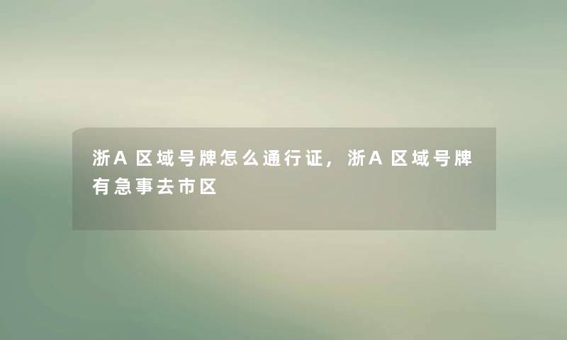浙A区域号牌怎么通行证,浙A区域号牌有急事去市区